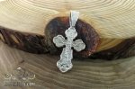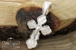 Изображено на кресте: Распятие Христово. Покров Пресвятой Богородицы. Великомученик Георгий Победоносец. Православный крест.