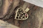 На фото показан женский золотой кулон Сердце, золото 585 пробы с красным камнем в виде сердца (гранатом).